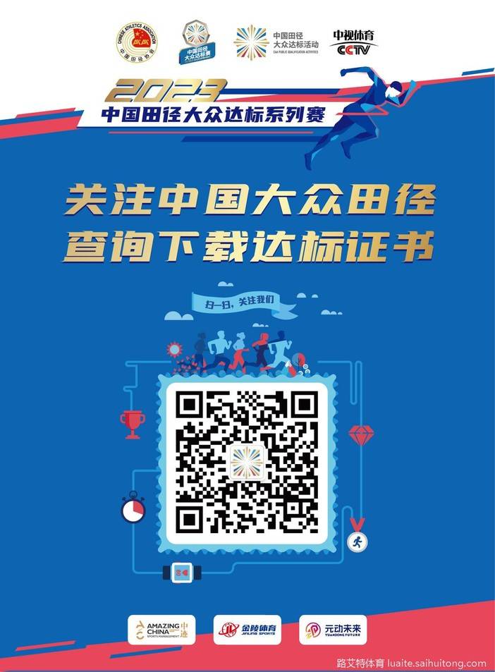 比赛24小时后,所有参赛人员可通过“中国大众田径”微信公众号或“中国田径协会”官网查询成绩下载成绩证书。